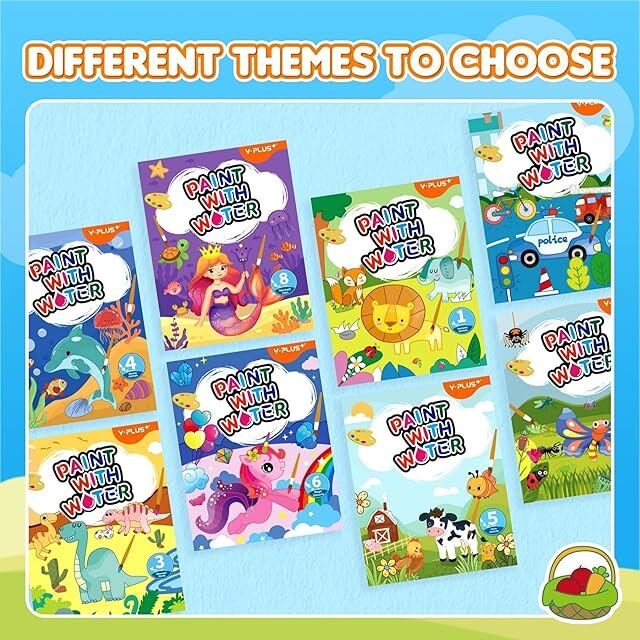 YPLUS (ワイプラス) 水で塗る水彩絵具塗り絵ブック アートクラフトギフト ブラシ付き クリスマスのちょっとしたギフト 幼児用 (5つのテーマすべて)