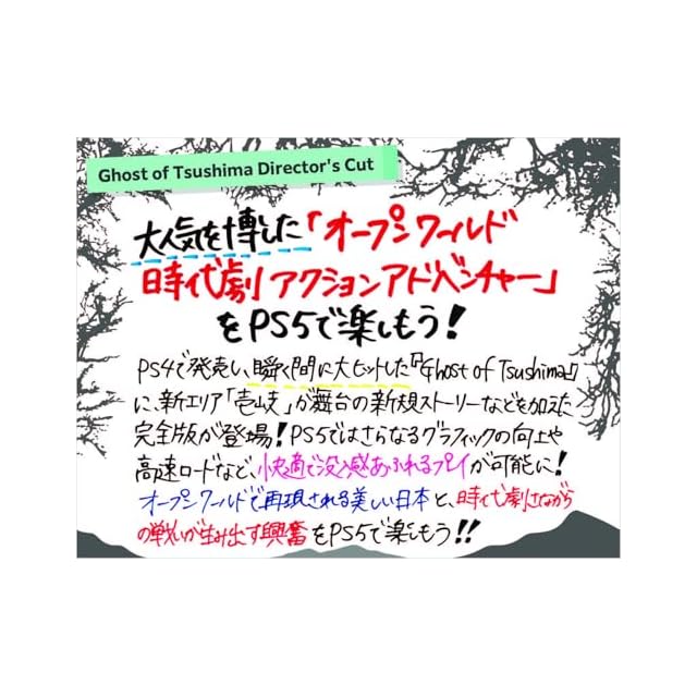 『Ghost of Tsushima Director's Cut』は、2020年にPS4で発売され、世界中で大ヒットを記録したオープンワールド時代劇アクションアドベンチャー『Ghost of Tsushima』に、様々な追加要素や完全新規ストーリー「壹岐之譚」をセットにした完全版と言える内容になっております