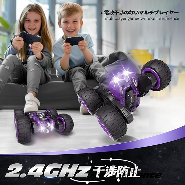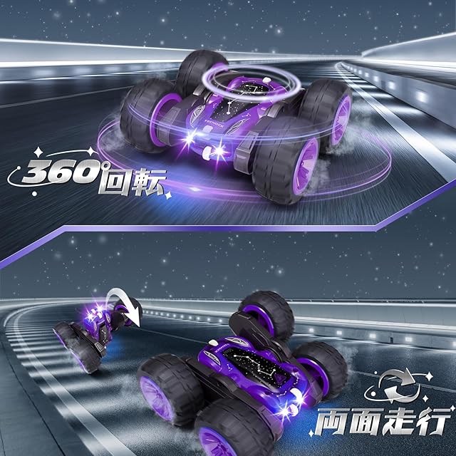 Tecnock ラジコンカー 子供向け USB-C直接充電式 スタントカー 360度回転 両面走行 ラジコン オフロード USB充電 4WD四輪駆動 RCカー 2.4GHz おもちゃ 車 男の子 誕生日 贈り物 大人向け プレゼント (パープル)