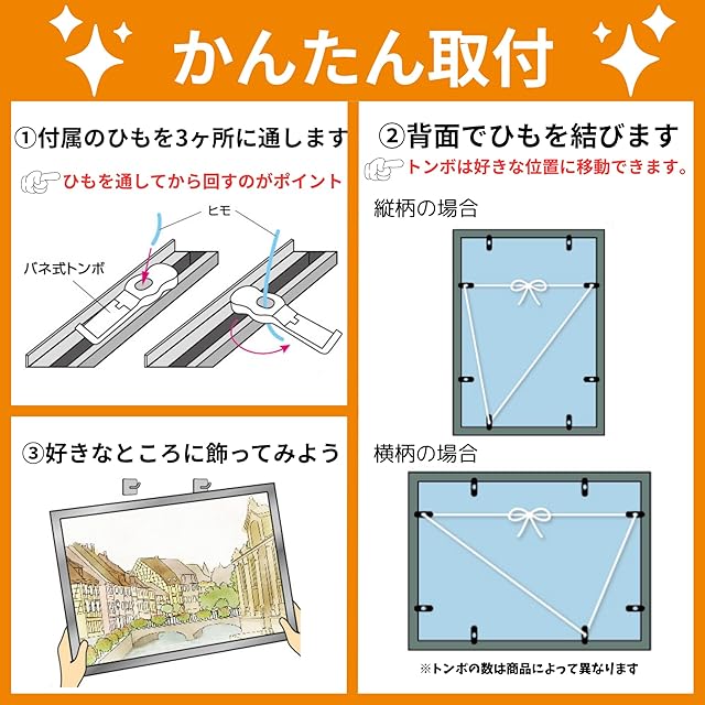 工具不要。壁掛けに便利な紐付き。