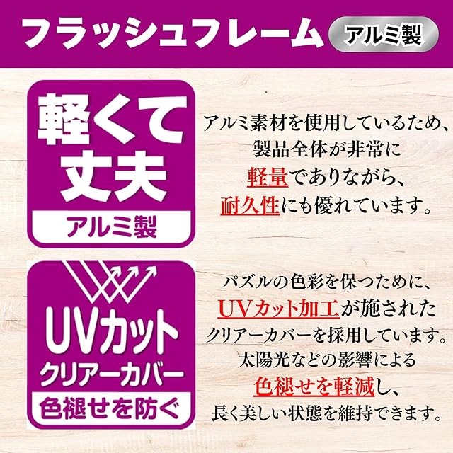 パズルが色褪せにくいUVカット採用(透明カバー付)