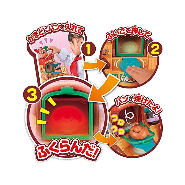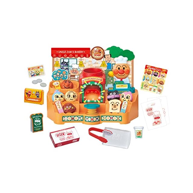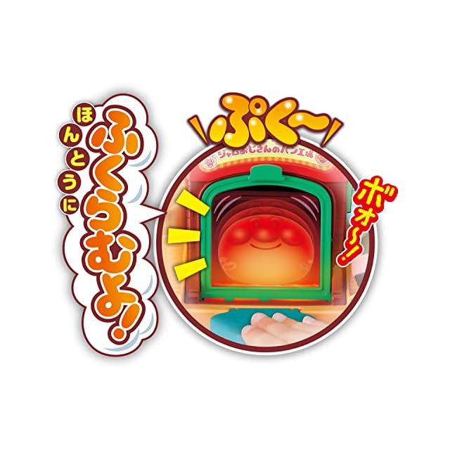 ぷく~!かまどでパンがふくらんじゃう!アンパンマンたちのパンを焼いて、パン屋さんごっこをお楽しみいただけます。パン生地が、まるで焼けているようにぷく~っと本当に膨らみます。お店屋さんごっこを楽しめる小物もいっぱい入っています。