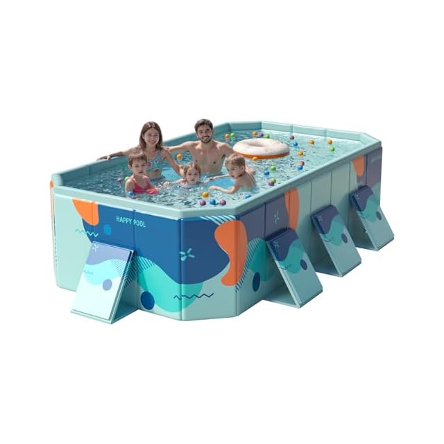 OMATA 【2025新改良 工場直売 非膨張式プール】新デザイン ビニールプール 空気入れ不要 大型 子供用 家庭用 長方形 折り畳み式 収納便利 1秒高速オープン 耐高温 耐摩擦 安全無毒 水遊び 猛暑対策 家庭用 屋内用 アウトドア用 大型 水遊び 簡単な排水 安心安全な 日本語説明書付き(内径253*133*51CM,外径295*165*51CM)