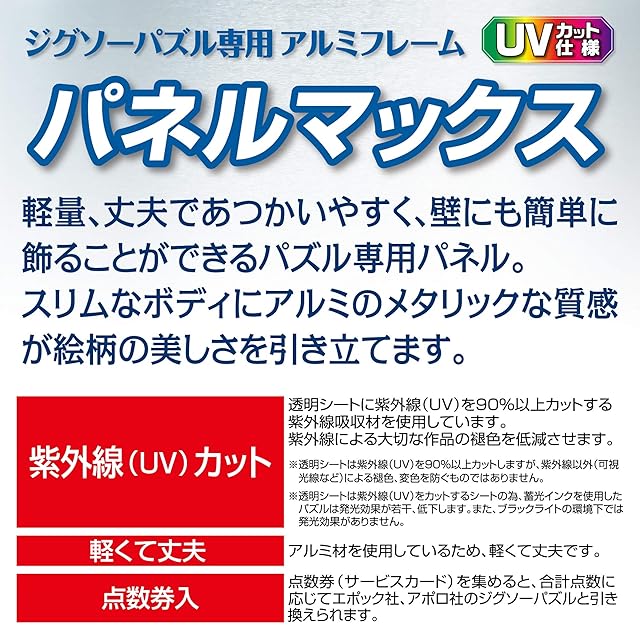 商品名:エポック社 【日本製】 アルミ製 パズルフレーム パネルマックス シルバー (49×72cm) (パネルNo.10-D) 掛ヒモ 点数券付き セルカバーUVカット仕様 パズル Frame 額縁