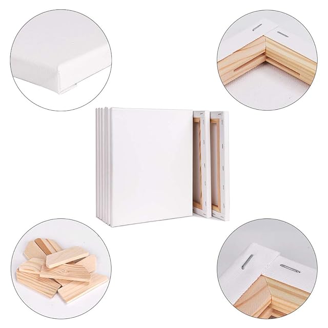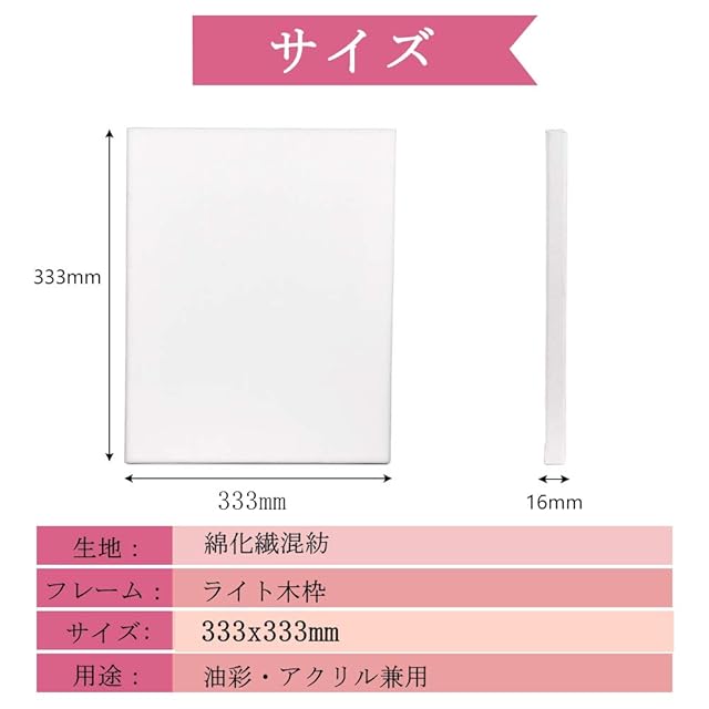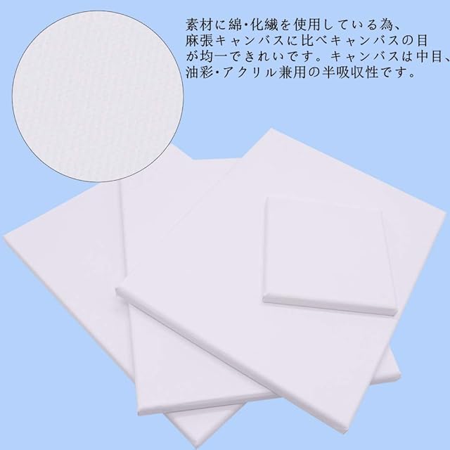 【仕様&丈夫な梱包】:S4サイズ333x333mm、5個/セット【生地】:綿化繊混紡【フレーム】ライト木枠、張りキャンパスはプラスチックフィルムで包まれています。また、四隅はコーナープロテクターがあります、張りキャンパスをしっかり保護し、耐久性ときれいにするために設計されています。