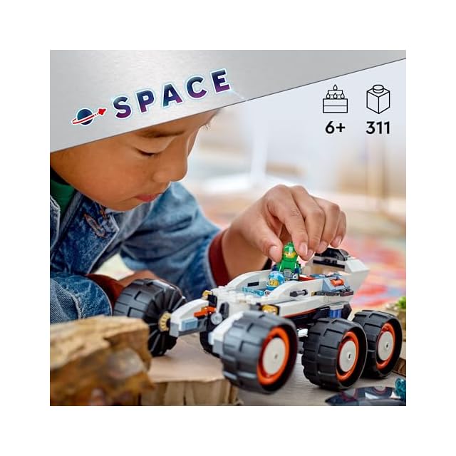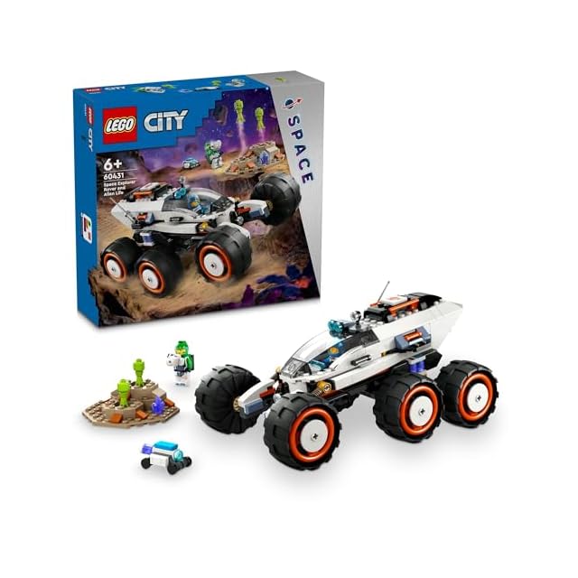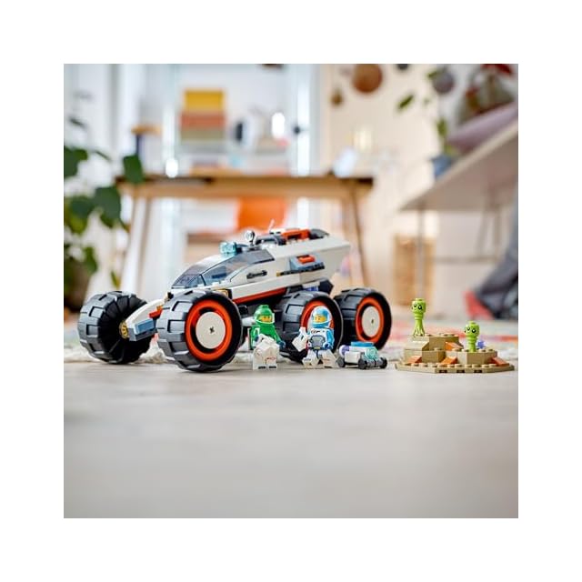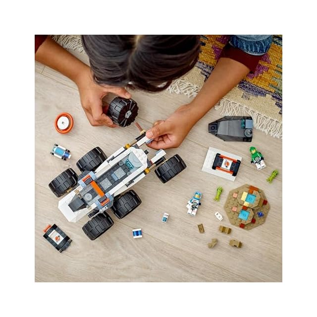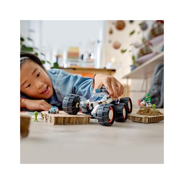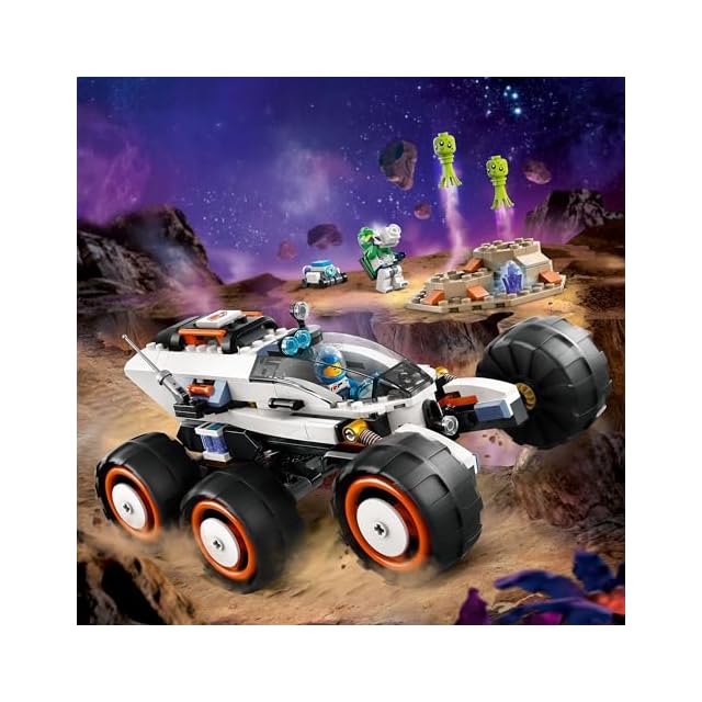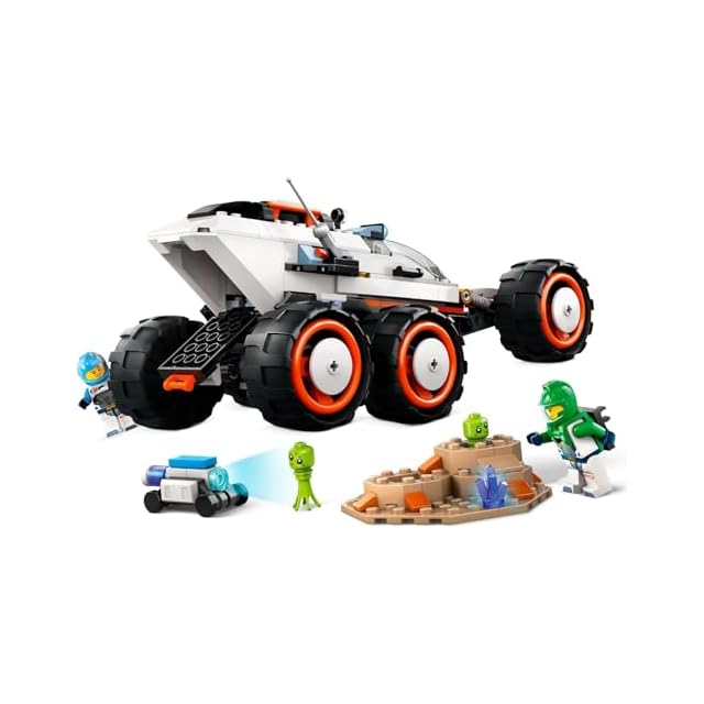 想像力を宇宙へと飛び立たせるのりもののおもちゃ – 6つの特大タイヤと最先端のサスペンションを備え、エイリアンの住む惑星を探検する探査車モデルは、2体のミニフィギュアを乗せられるコックピット付き