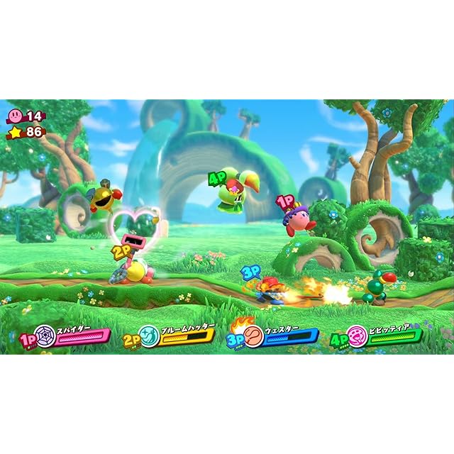 『星のカービィ』最新作がNintendo Switchに登場。今回のカービィはハートを投げて敵を仲間に加える新アクションを駆使して、仲間を次々に入れ替えながら4人で協力して冒険を進めていきます。