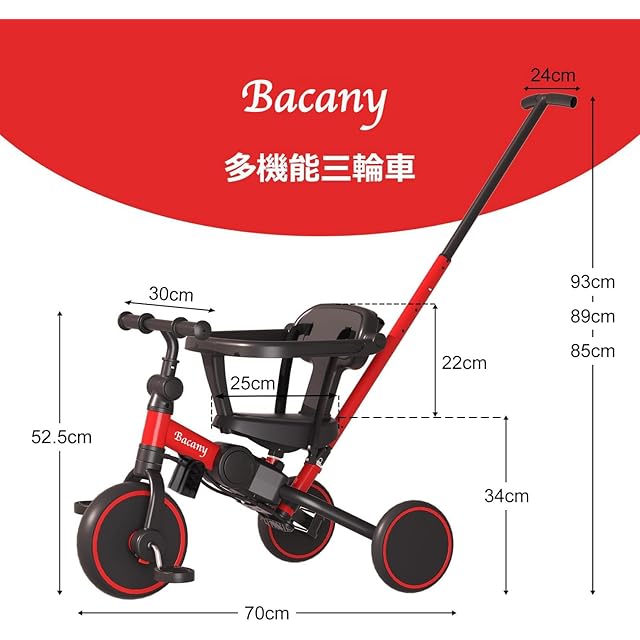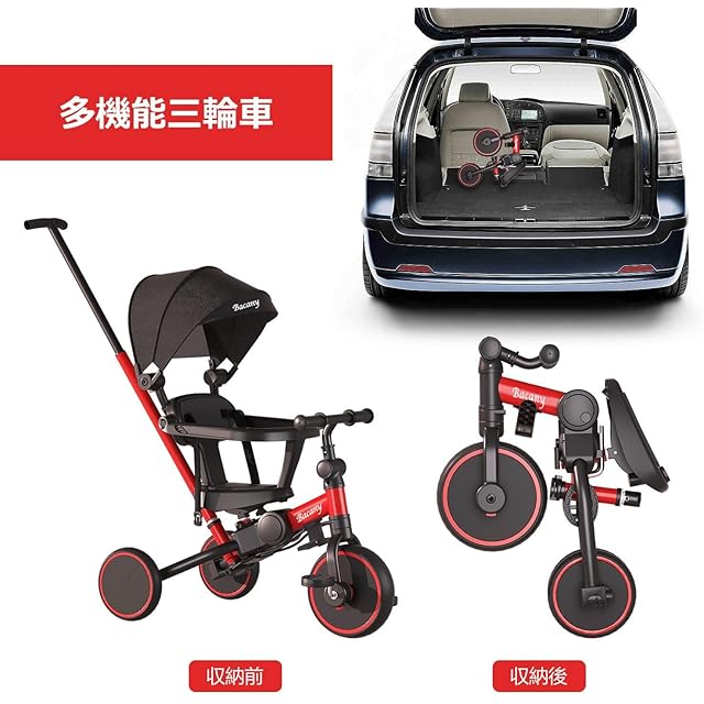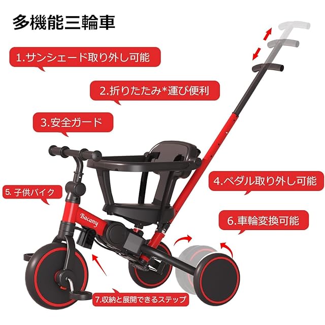 商品名:Bacany 子供用三輪車 7in1 三輪車 ステップ付き 折りたたみ 手押し棒 おしゃれ 1歳-6歳 コンパクト 自転車 おもちゃ 乗用玩具 幼児用 プレゼント おもちゃ 調整可能 お祝い ギフト シートベルト付き (レッド)