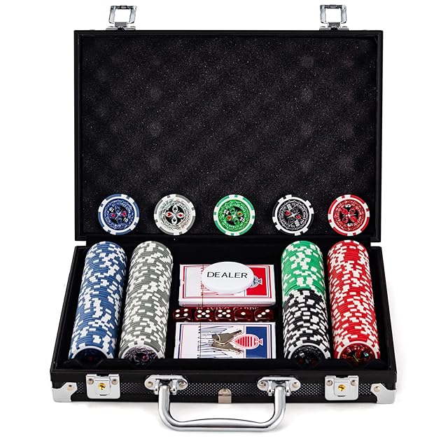 *セット内容:チップx200枚;ケース/ブラックx1個;サイコロx5個;トランプx2組;ディーラーボタンx1個;鍵x2本