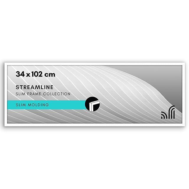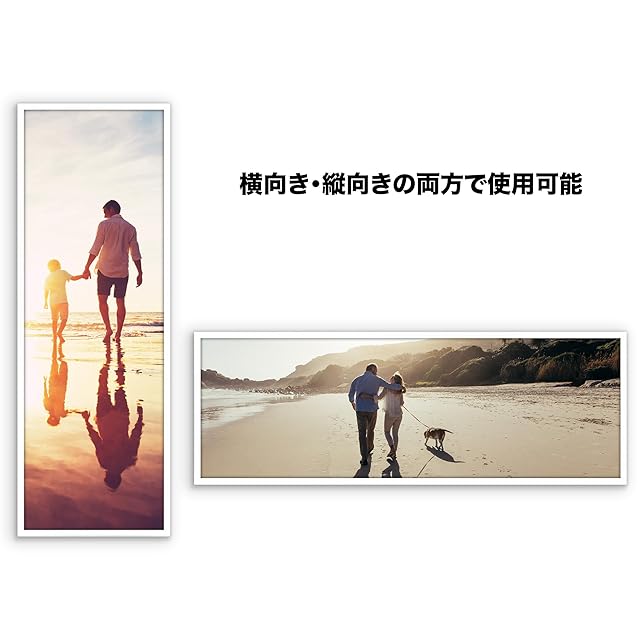 理想的なサイズと耐久性のある素材: この34cm x 102cmパズルフレームは、スリムモールディング(細枠)を採用し、軽量で耐久性に優れたPVC素材を使用しています。ホワイト仕上げのデザインが、大切な思い出やお気に入りの写真を美しく飾ります。