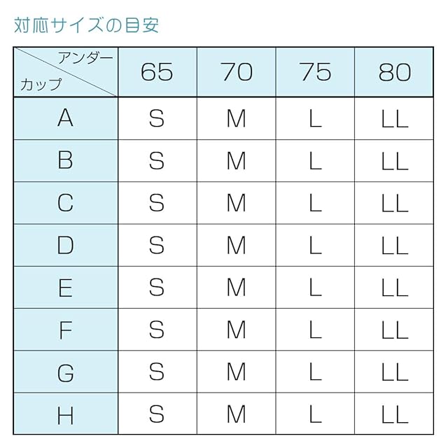 サイズ:S(アンダーバスト63~67cm)・M(アンダーバスト68~72cm)・L(アンダーバスト73~77cm)・LL(アンダーバスト78~82cm)