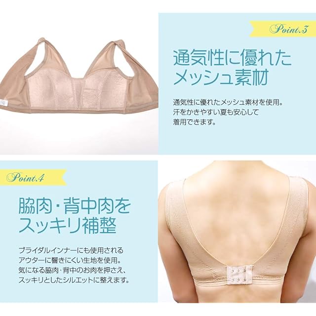 ラインがひびかないメッシュ仕様 ・ 脇肉、背中肉をスッキリおさえる補正機能 ・ 特許出願中(出願№ 2015-120448)