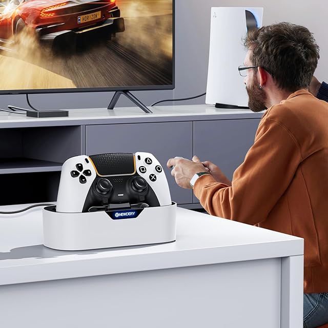 NEWDERY PS5 コントローラー 充電スタンド 収納スタンド 急速充電 置くだけ充電 ps5コントローラー 周辺機器 アクセサリ USB-Cケーブル付属 LED指示ランプ付き 過充電防止 コンパクト 軽量 ホワイト