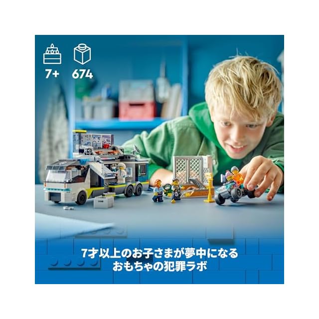 科学捜査トラックのおもちゃ – レゴシティ ポリストラック犯罪ラボは、手がかりをもとに犯罪者を追う科学捜査官に憧れるお子さまにうってつけのセット(対象年齢:7才以上)