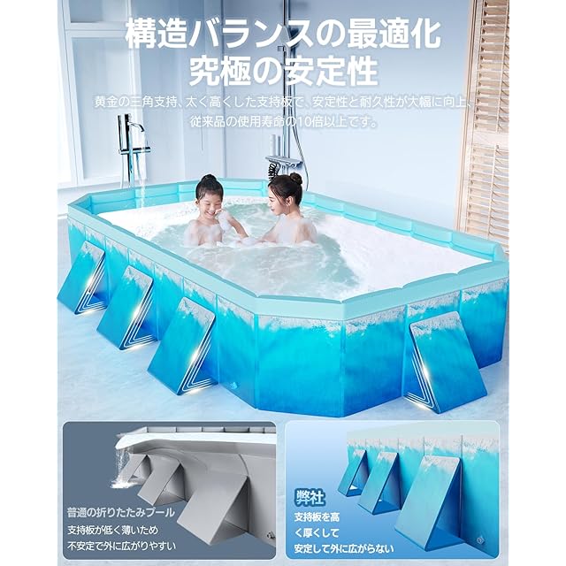 【優れた素材、最高の安定性と耐久性!】Alwgreenの大型家庭用プールは、厚さ8mmの高強度5層コンポジットでを使用し、底面には4mmの高品質PVC素材を使用しているので、高さと強度を増した支柱を備え、従来の折り畳みプールでよくある破損、水漏れや変形の問題を完全に解決しました。耐用年数は従来品の10倍以上です。期待以上の「これ、いいね」を。