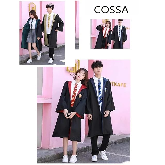 商品名:[COSSA]]ハリポタ ハリー/ポッター ローブ 大人用 魔法 ハロウイーン コスプレ 衣装 セットコスチューム 男女共用 cosplay 誕生日 プレゼントコスチューム ハロウイーン パーティー 変装 仮装 男女共用 文化祭 漫遊展 (ローブ+眼鏡 + ネクタイ + 魔法の杖) 4点フルセット (ブルー, L)