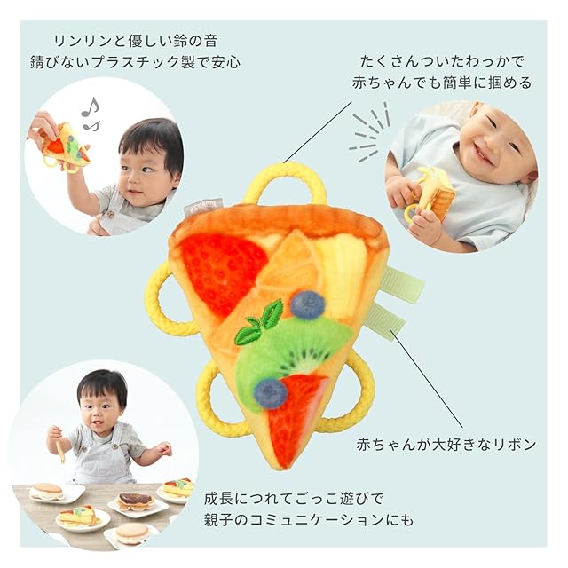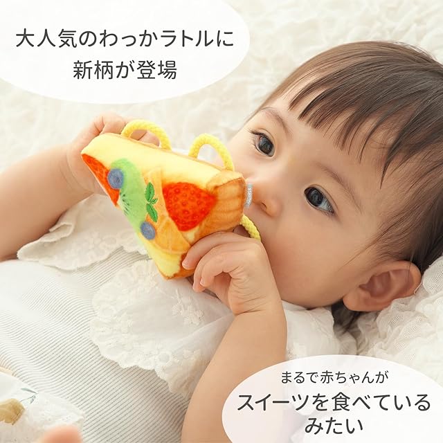 ✅【わっかラトル/本物そっくりなおもちゃ】本物そっくりでおいしそうなフルーツタルトのかたちのラトル。持って遊ぶ赤ちゃんもまわりの大人も、みんなを笑顔にする楽しいデザインです(両面で色違い)。少し大きくなったら「ちょうだい」「どうぞ」のやりとりや、おままごとなどのごっこ遊びも楽しめます。