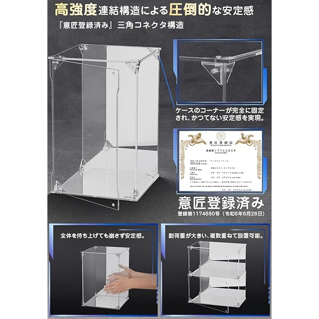✅【高強度連結構造】次世代フィギュアケースの登場です!衝撃や揺れでも崩れない三角コネクタ構造により圧倒的な堅牢性を実現。大切なコレクションをしっかり守ります。【意匠登録済】※意匠登録第1174680号