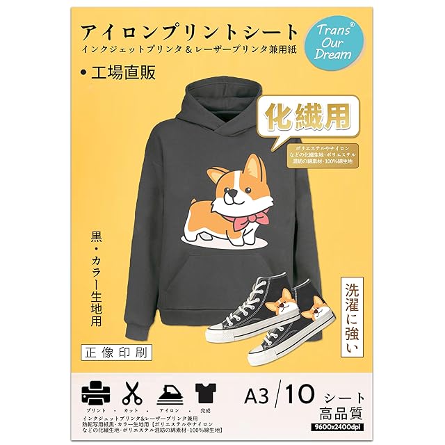 商品名:TransOurDream真正のアイロンプリントシート 化繊生地用アイロンプリントシート A3 10枚 インクジェット&レーザープリンター共用 ナイロン ポリエステル ポリエステル混紡の綿素材 100%綿に適用 転写紙 アイロンプリント用紙 Tシャツ転写紙 JP-FindX-010
