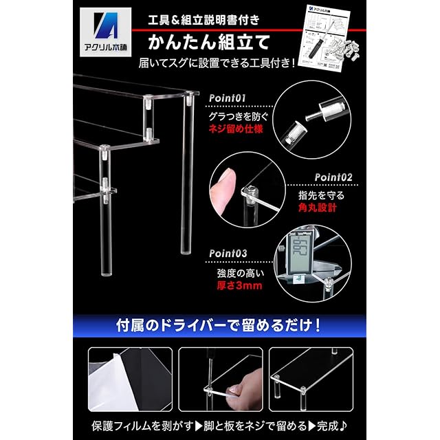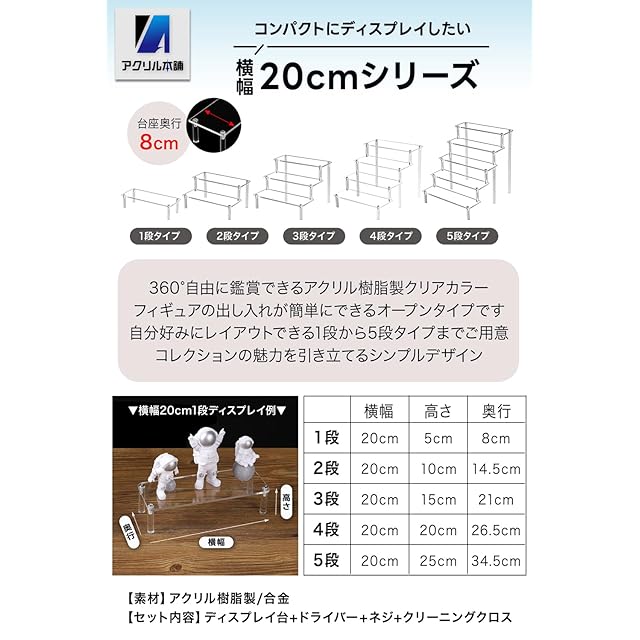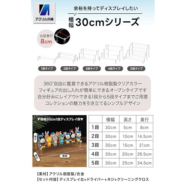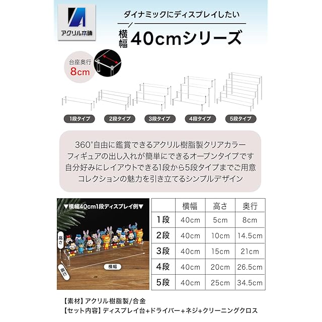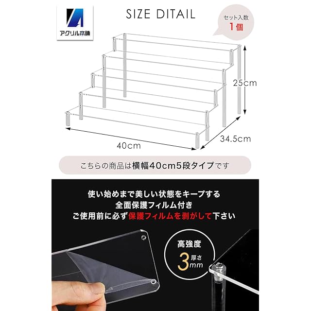 商品名:アクリル本舗 ディスプレイスタンド フィギュアスタンド 棚 ディスプレイ台 コレクションケース アクリル 展示台 陳列 台座 (クリア幅40㎝×5段)