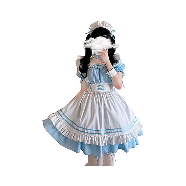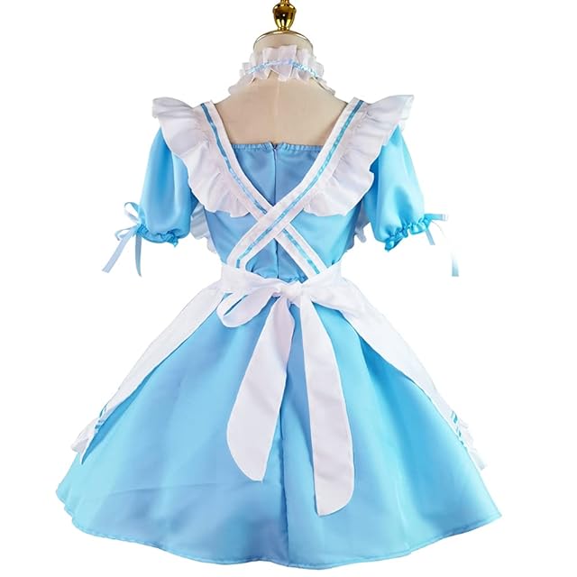[ANONIE] メイド服 コスプレ仮装 初心者 セット かわいい コスチューム ホワイト+ブラック 豪華セット (blue, S)