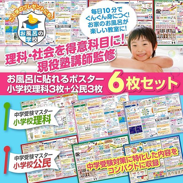 お風呂の学校 セット価格 中学受験マスター理科/公民 お風呂ポスター2種類セット 日本製 理科 社会 学習 知育 B3サイズ 防水