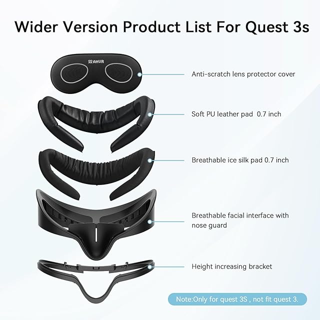 AMVR Quest 3Sに対応フェイスクッション洗濯可能フェイスカバー柔らかいPU&アイスシルクフェイスフォームパッド交換光漏れを軽減 簡単取付 6 in 1セットQuest 3S用アクセサリー(拡張版)