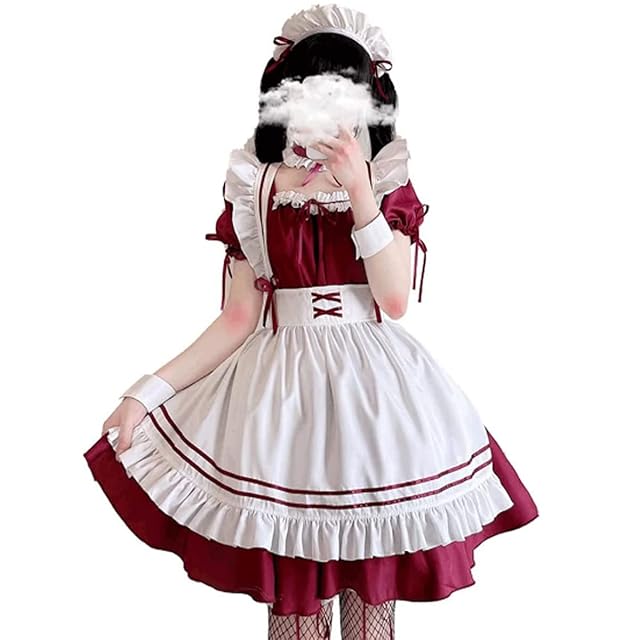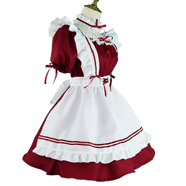 [ANONIE] メイド服 コスプレ仮装 初心者 セット かわいい コスチューム ホワイト+ブラック 豪華セット (red, 5XL)