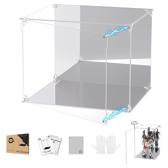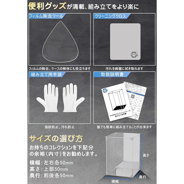 KUKER フィギュアケース アクリル 台座ミラー 背面ミラー マグネット式 磁石付き 前扉 コレクションケース より堅固 組み立て式 アクリルケース ディスプレイケース 防汚れ 手袋 クリーニング クロス付き