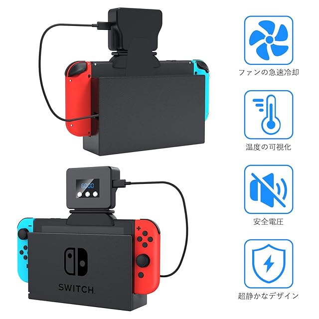 商品名:【2024 アップグレード版】Switch対応 冷却ファン ハイパワー 冷却 クーラー Switch 用 冷感 扇風機 夏用 排熱 温度表示 風量変更 スイッチドック 静音