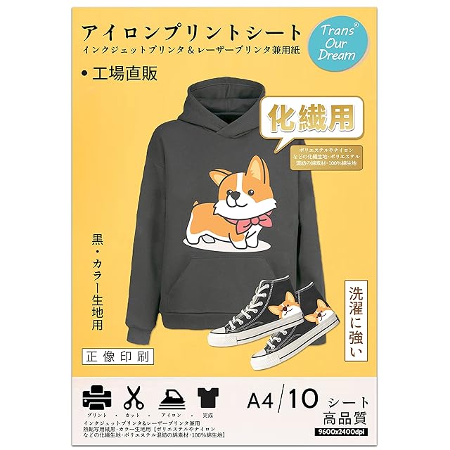 商品名:TransOurDream真正のアイロンプリントシート 化繊生地用アイロンプリントシート A4 10枚 インクジェット&レーザープリンター共用 ナイロン ポリエステル ポリエステル混紡の綿素材 100%綿に適用 転写紙 アイロンプリント用紙 Tシャツ転写紙 JP-FindX-10