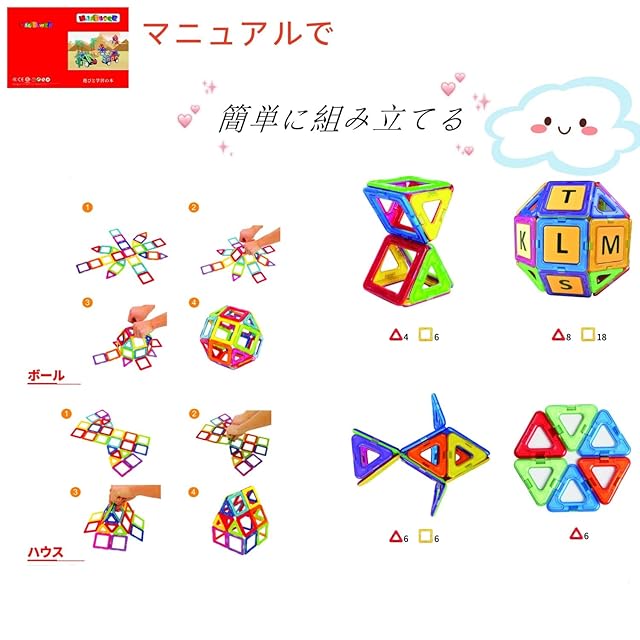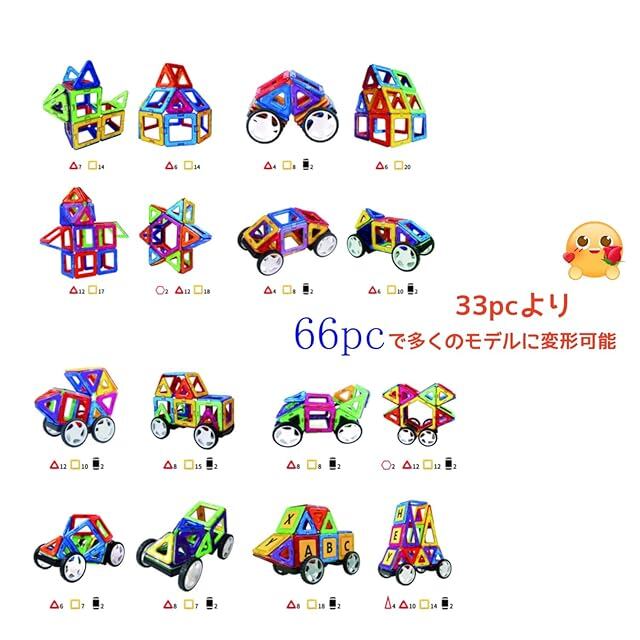 商品名:MAGBLOCK 66ピース マグネットブロック 磁石ブロック マグネットおもちゃ 積み木 立体 知育玩具 小学生 男の子 女の子 子供 入園 保育園 贈り物 ギフト 誕生日 クリスマス プレゼント (日本語マニュアルを含む)
