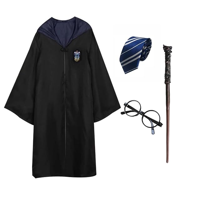 [COSSA]]ハリポタ ハリー/ポッター ローブ 大人用 魔法 ハロウイーン コスプレ 衣装 セットコスチューム 男女共用 cosplay 誕生日 プレゼントコスチューム ハロウイーン パーティー 変装 仮装 男女共用 文化祭 漫遊展 (ローブ+眼鏡 + ネクタイ + 魔法の杖) 4点フルセット (ブルー, XL)