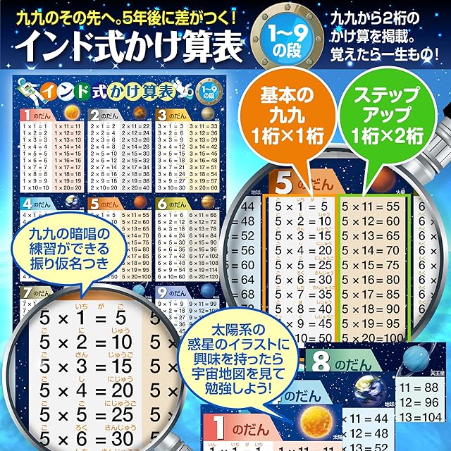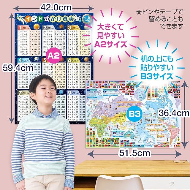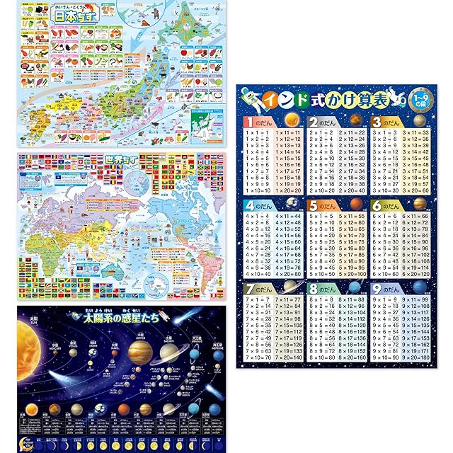 色:地図/インド式かけ算(1-9の段)宇宙 お風呂ポスター2種類セット