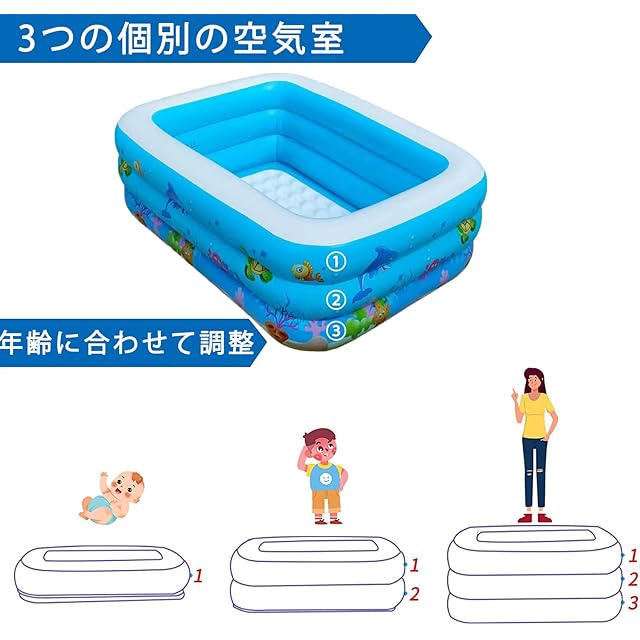 商品名:ビニールプール 大型 家庭用 150*110*50cm スイミングプール 2-3人用 大容量 子供用 折り畳み式 親子遊び PVC 安全無毒 厚く 耐摩擦 耐高温 夏の日 スイミング 屋内 屋外用 暑さ対策 水遊び お庭用 ビーチ用(150*110*50cm)