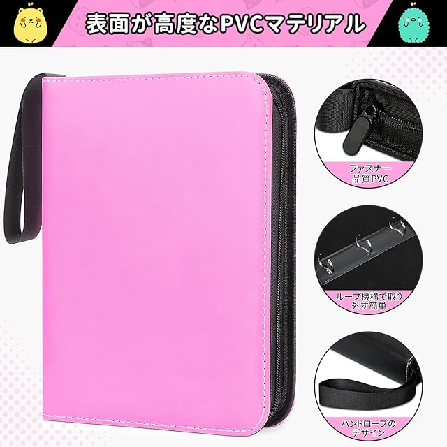 商品名:カードファイル トレカファイル 9ポケット 900枚収納 50枚入り 表紙はPVC素材の防水性と耐摩耗性のカードバインダー ポータブルファスナー カードシート他のゲームカード収納用 (9ポケット, ピンク)