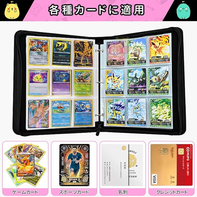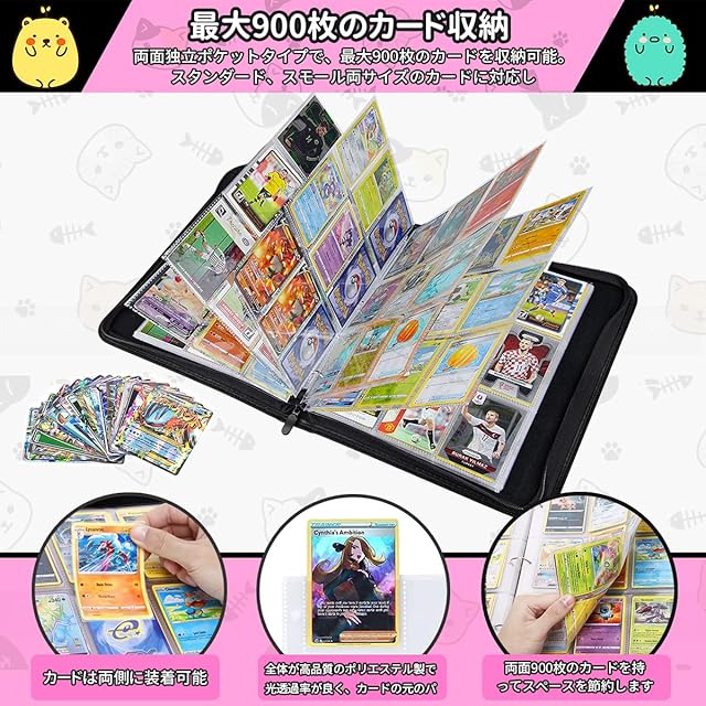 カードファイル トレカファイル 9ポケット 900枚収納 50枚入り 表紙はPVC素材の防水性と耐摩耗性のカードバインダー ポータブルファスナー カードシート他のゲームカード収納用