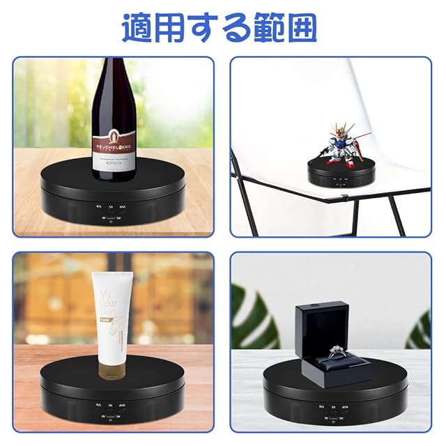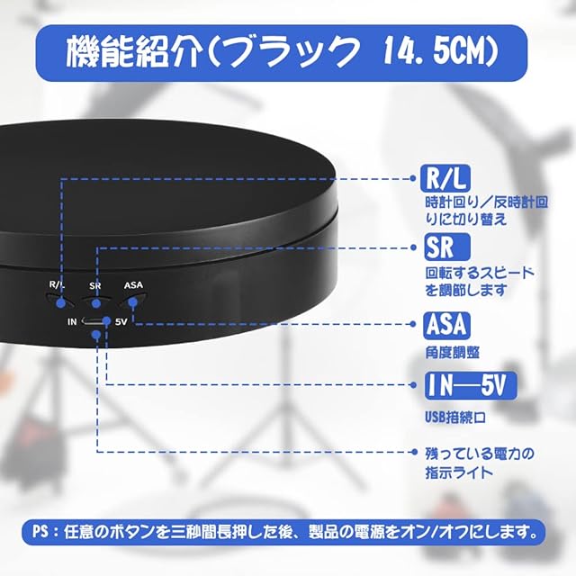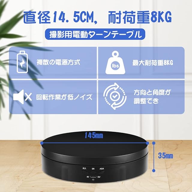 商品名:L'QECTED ターンテーブル 電動回転台 360度回転台 電動ターンテーブル 耐荷重8kg 方向角度調整可能 安定性 低騒音 直径14.5CM フィギュア 撮影用(ブラック 14.5cm)