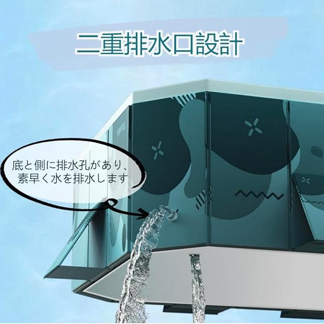 【二重排水口設計】子供用プールの底と側面に排水口がある、蓋を開けてすぐ排水できます。排水栓が二重構造により、プール遊びの時に水漏れの心配はありません。水遊び後の片付けも簡単になります。ご注意:安全のため、水量は最大容量の80%を超えないように注意してください。