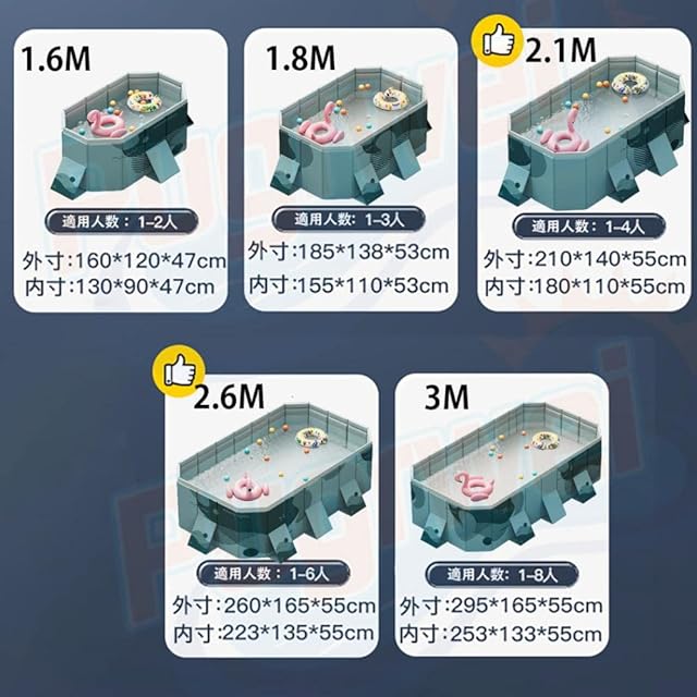 商品名:Pugrwei プール 大型 家庭プール 空気入れ不要 折りたたみプール 大型プール 2.1M 子供用プール 深い 四角い プール大きめ 折り畳みプール 巨大プール 大きいプール 特大プール 収納便利 子供 大人 水遊び 家庭用 大人用 自宅用 庭 ベランダ 室内 猛暑対策 海水浴 砂場
