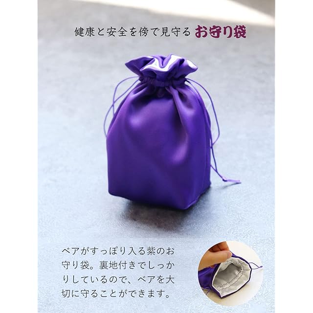 サイズ:【ベア】H12cm×W8cm×D4.5cm 【お守り袋】H13cm×W7cm×D6cm ※商品の特性上個体差がございます。 素材:【ベア】ポリエステル、わた、プラスチック、マグネット、内袋入りガラスペレット(おもり) 【お守り袋】ポリエステル