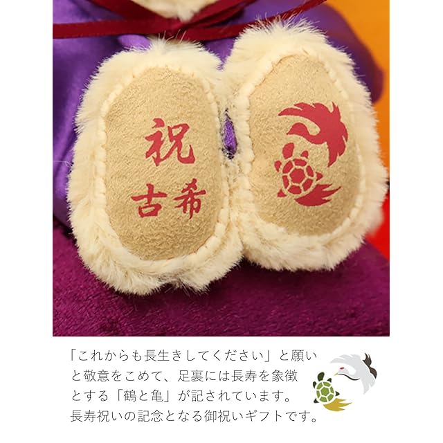 【プティルウ】長寿ベア 4Sマスコットサイズ (巾着袋) 古希 ノーマル