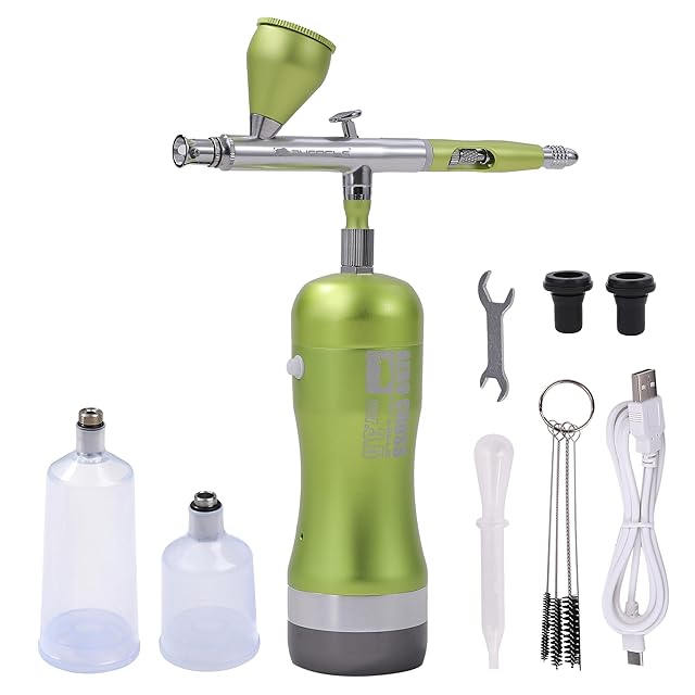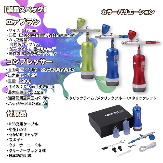 商品名:aurochs 充電式 エアブラシ エアロクロス コードレス ver.3.5 EM エントリーモデル ダブルアクション ハンドピース コンプレッサー 口径 0.4mm 初心者 ビギナー USB type-C 小型 プラモ 模型 塗装 アート ペイント (メタリックライム)