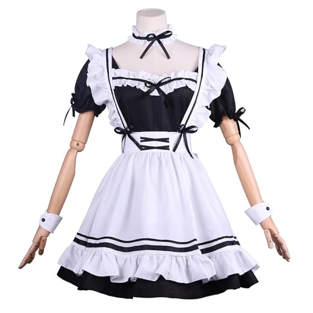【豪華10点セット】ワンピース(黒)*1点・エプロン(白)*1点・カチューシャ*1点・チョーカー(首)*1点・カフス(腕)*2点・ガーターリング(片太もも)*2点・ストッキング*2点 文化祭、学園祭、仮装パーティ、ハローウィン、コスプレイベント、余興、女装、ステージ衣装、自撮り、撮影会、二次会、コンパニオン、ガールズバー、メイドカフェ、居酒屋、カラオケ店などの制服、幅広くご活用いただけます。 ベーシックなデザインでメイド服が好きな人へ向けたメイド服が登場。男性でもご使用できます。黒ワンピースは背中ファスナーが付き、胸元もウエスト部分もゴムで伸縮性があります。 ランジェリーを洗う場合は手洗いを進めしますが、洗濯機をご使用頂く場合は洗濯ネットに入れて下さい。手洗いモード付きの洗濯機でしたら、手洗いモードでの洗濯をおすすめ致します。詳しいサイズはサイズ表をご参照ください。サイズなどご不明がございましたら、気軽にお問い合わせくださいませ。 若干繊維のほつれや糸のはみ出し、縫製の甘い部分などがある場合がございます。あらかじめご了承下さい。画面上の色はパソコンの環境やディスプレイの設定により、実物とは異なる場合があります。