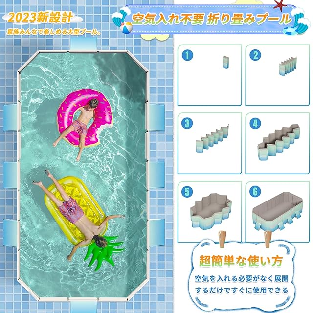SIGESHUO プール 大型 家庭プール 空気入れ不要 折り畳み式 大型プール 深い 四角い プール大きめ 折り畳みプール 巨大プール 大型プール 大きいプール 子供用プール 特大プール 収納便利 子供 大人 水遊び 家庭用 大人用 自宅用 庭 ベランダ 室内 砂場 庭 猛暑対策