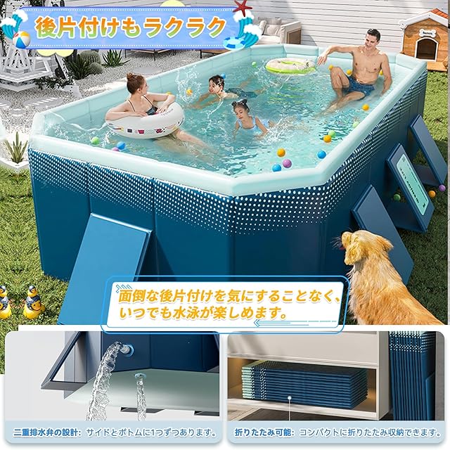 【空気入れ不要折り畳みプール】 空気入れ不要 大型プールは、空気入りポンプを追加購入する必要がないだけでなく、広げるだけですぐに使用できます。空気を入れる必要がないので、ベランダやバスルームでも使用でき、スペースをあまり必要とせずに水遊びを楽しむことができます。