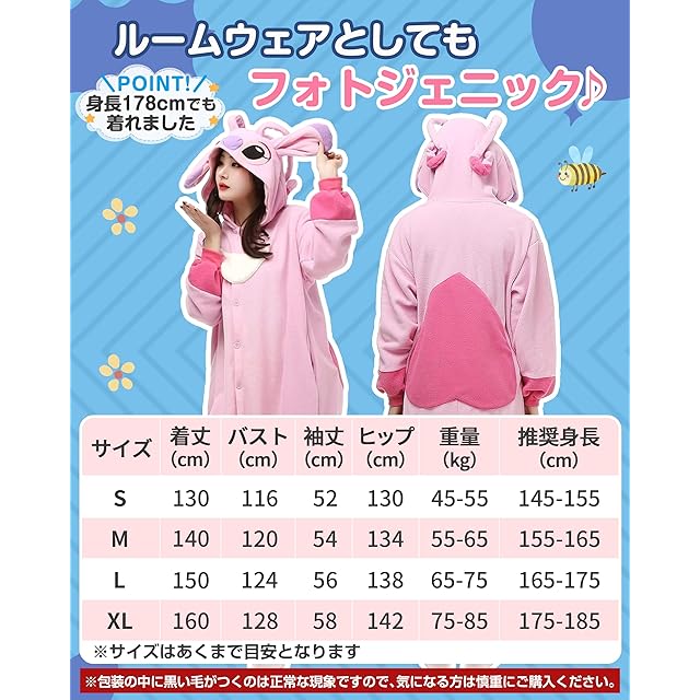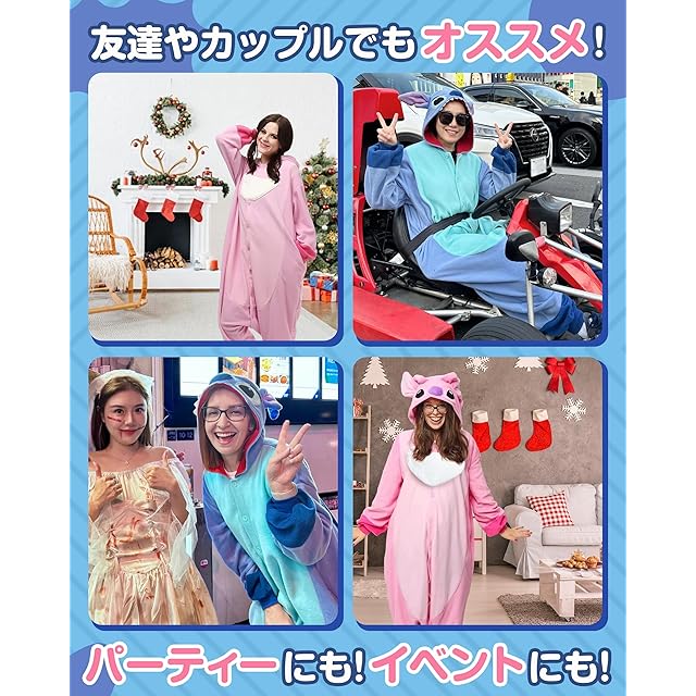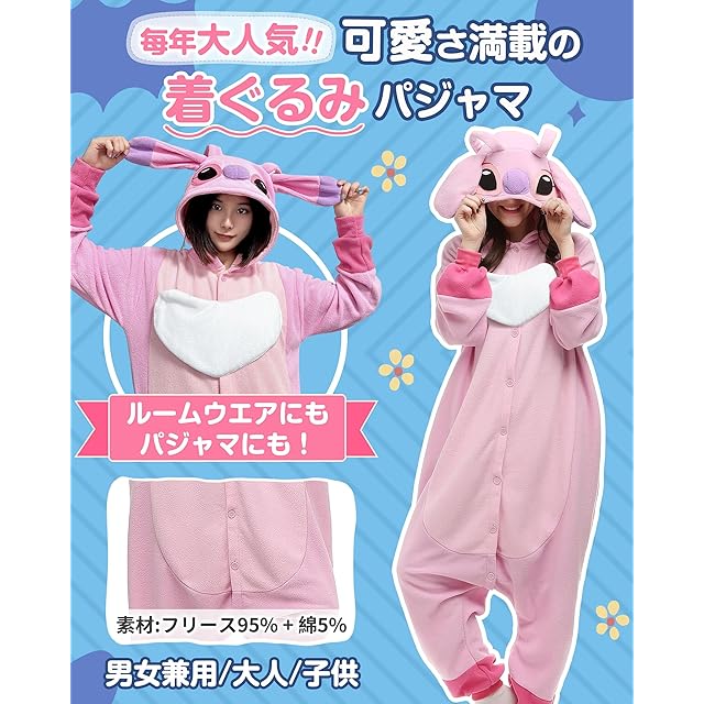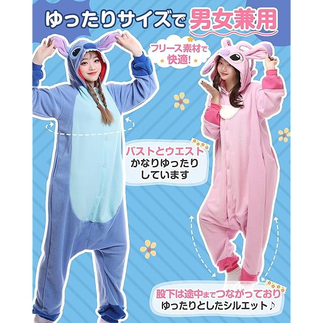 ✅【ルームウエアにも!パジャマにも!】人気キャラクターのかわいい着ぐるみで、ゆったりサイズで、ルームウェアやパジャマ、ハロウィンの仮装にも、秋冬にぴったり。対象:男女兼用、大人、子供<br/>✅【細部にこだわったディテール】❶両サイドにスマホが入るポケット付きで、お出かけにも便利! ❷股下は途中までつながっており、ゆったりとしたシルエットです。 ❸バストとウエストはかなりゆったりしています。 ❹袖口と足裾はフィット感があります。 ❺(ピンク)前開きジッパーで着替えは楽々。(ブルー)正面はボタン仕様。好みに合わせて選べる!!<br/>✅【フリース素材で快適】フリース生地(フリース95%+綿5%)を使用し、柔らかく心地よい肌触りで暖かさを保ちます。かわいさ満載の着ぐるみパジャマです。<br/>✅【ルームウェアとしてもフォトジェニック】おしゃれで暖かいデザインは、お部屋でのリラックスウェアとしてはもちろんのこと、フォトジェニックなアイテムとしても使えます。お洒落で暖かい秋冬向けのパジャマ、家族や友達とお揃いもおすすめです。お誕生日祝い等のプレゼントにも!<br/>✅【適用場合・お手入れの注意事項】コスプレ衣装、イベント行事、お誕生会、ハロウィン、撮影用、クリスマス、カーニバル、イースター、パーティ、化粧舞踏会、演出、誕生日プレゼント、学園祭、お祭り、文化祭、贈り物など!30度以下の温水で弱めでの洗濯・もしくは手洗いをお勧めします。また、縫製品特有のほつれや汚れは洗濯で取り除けます。摩擦による色移りにご注意ください。