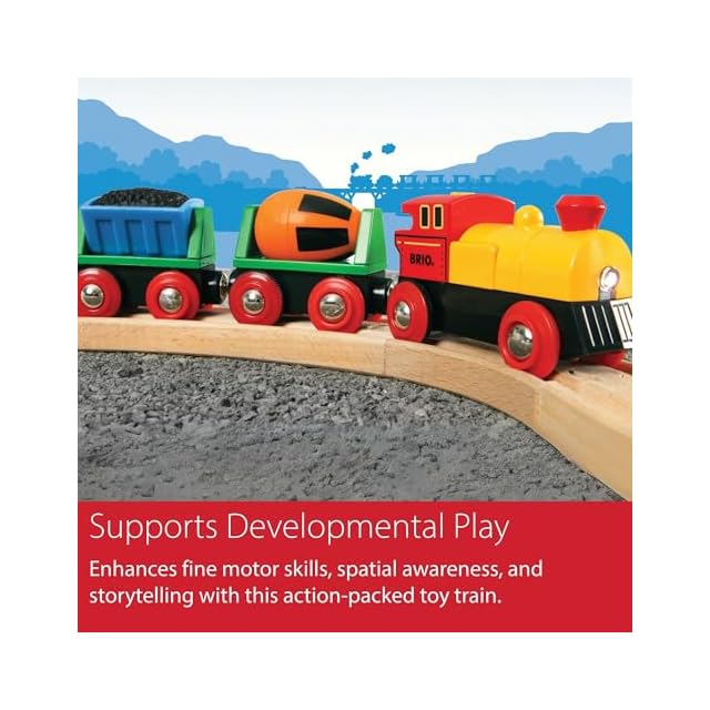 BRIO (ブリオ) WORLD バッテリーパワーアクショントレイン [全3ピース] 対象年齢 3歳~ (電車のおもちゃ 木のレール 電動 機関車) 33319