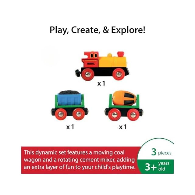 商品名:BRIO (ブリオ) WORLD バッテリーパワーアクショントレイン [全3ピース] 対象年齢 3歳~ (電車のおもちゃ 木のレール 電動 機関車) 33319