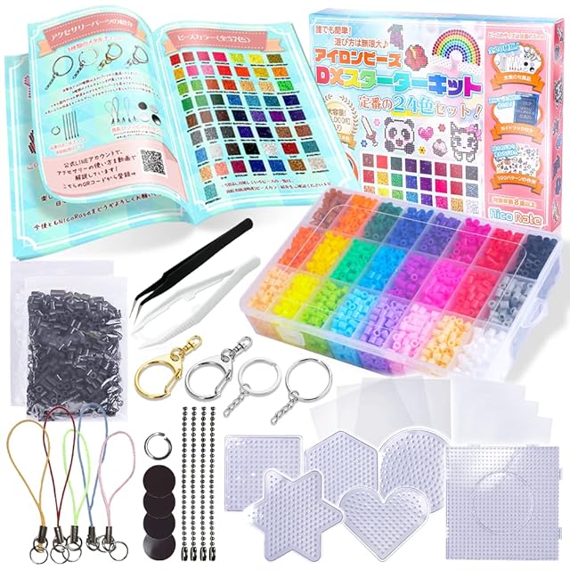NicoRate アイロンビーズ セット 誰でも簡単! 24色DXスターターキット 『届いてすぐ作れるスペシャルガイドブック付属』 5mm 約5000粒